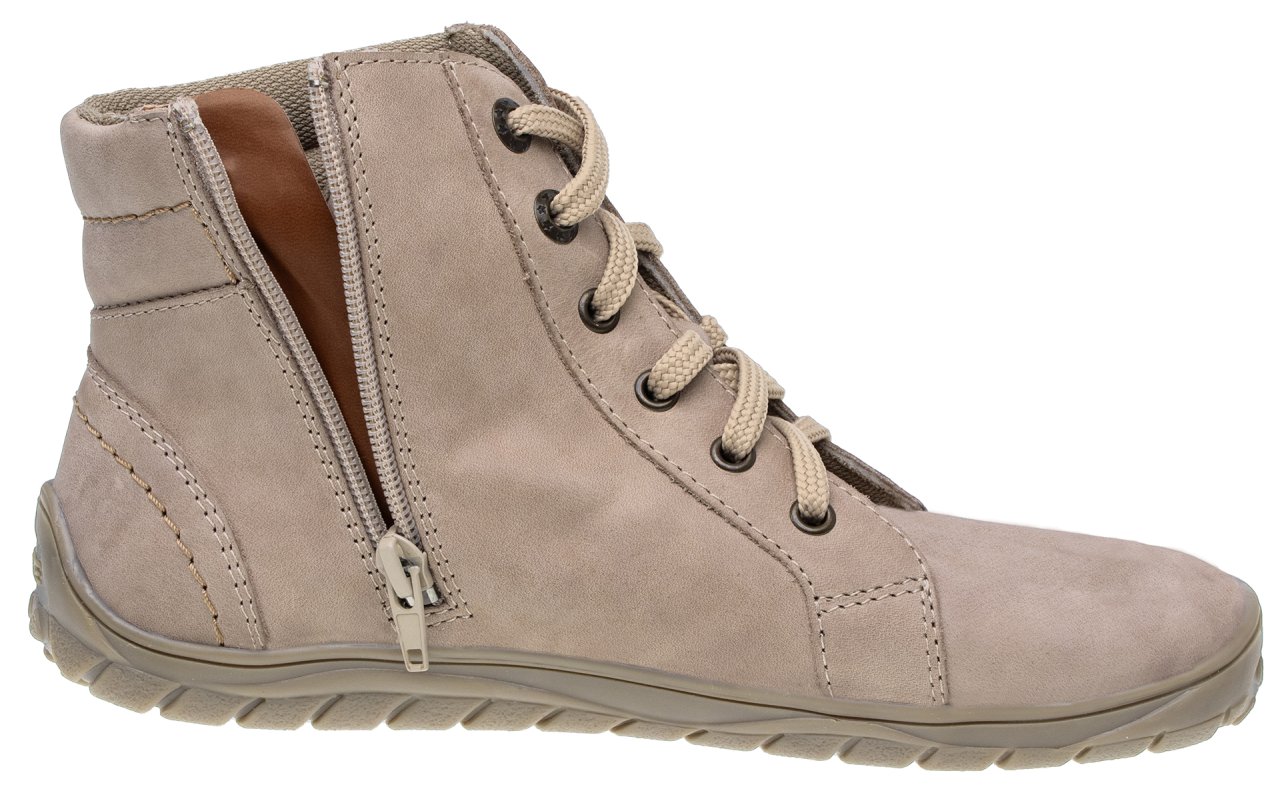 Kotníková celoroční barefoot obuv řady A je navržena pro každodenní nošení při běžném pohybu ve městě i při výletech do přírody. Kotníkový střih poskytuje lepší jistotu při chůzi a pomáhá stabilnímu usazení nohy v obuvi.