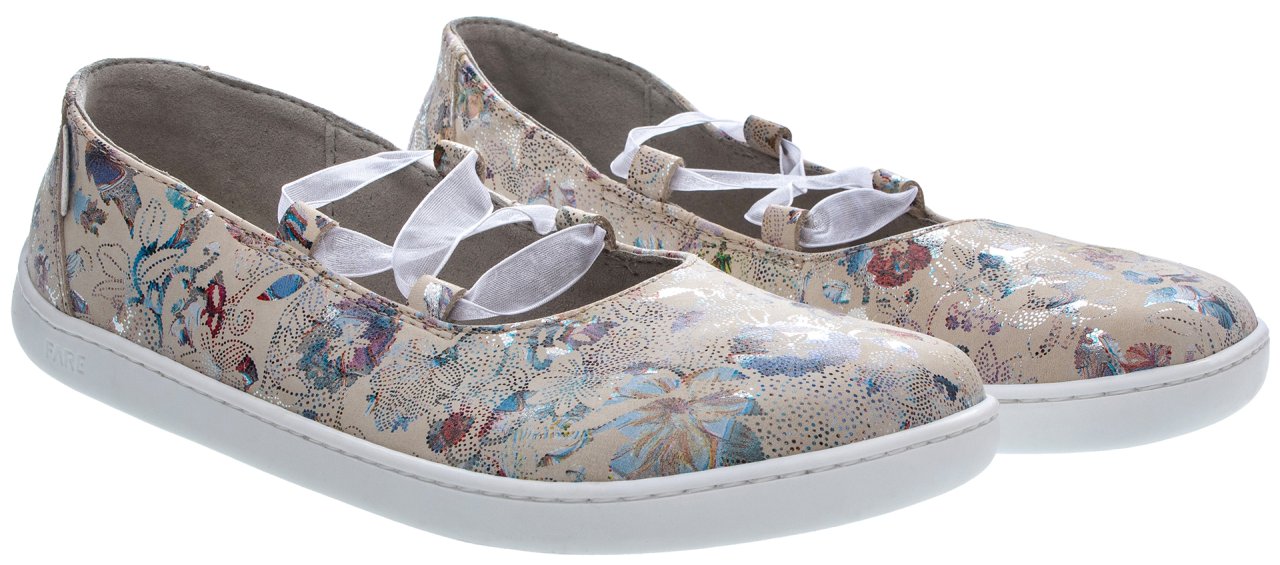 Flexibilní barefoot podešev FARESOLE VIBE podporuje přirozený pohyb chodidla a přispívá k pohodlnému kroku při běžném nošení. Zavazování pomocí stuhy umožňuje jemné přizpůsobení na noze a zároveň dodává obuvi jemný ženský detail.