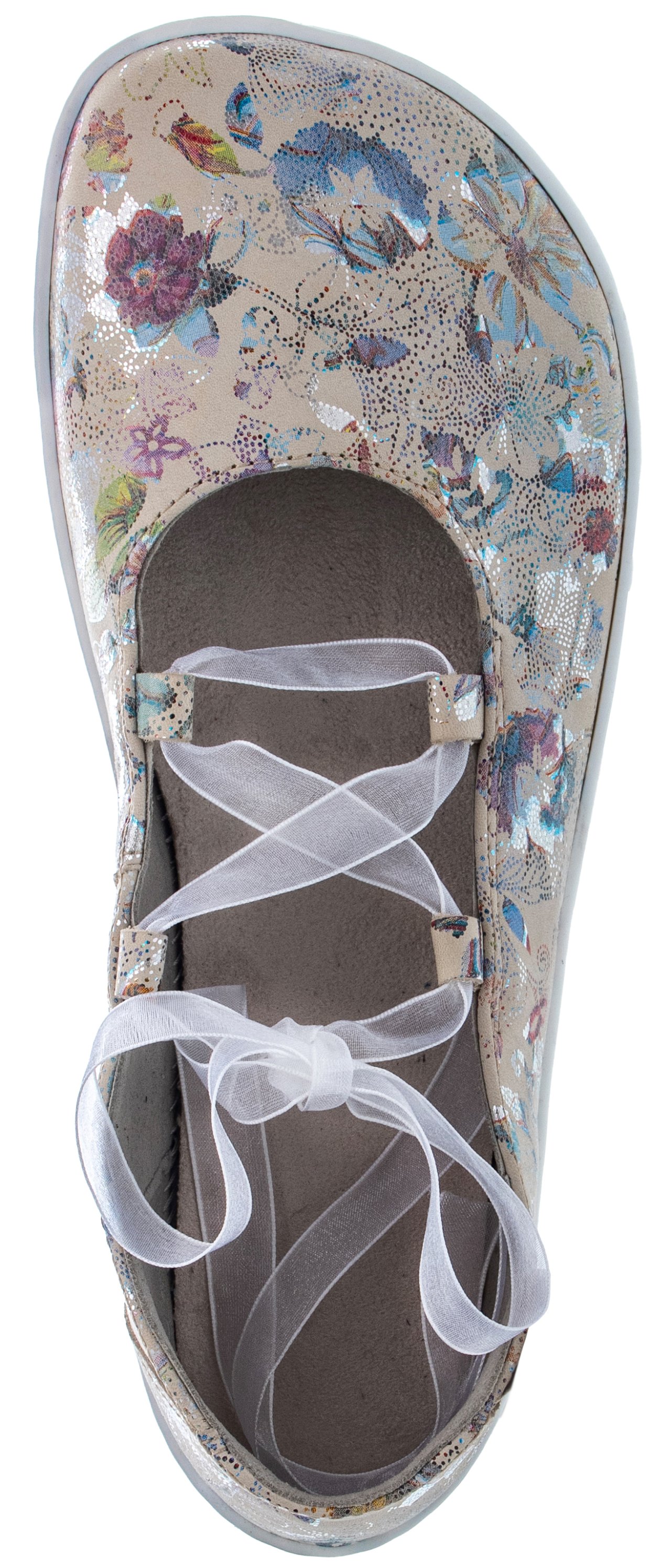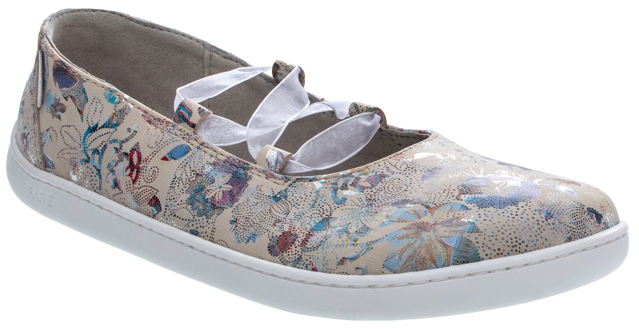 Flexibilní barefoot podešev FARESOLE VIBE podporuje přirozený pohyb chodidla a přispívá k pohodlnému kroku při běžném nošení. Zavazování pomocí stuhy umožňuje jemné přizpůsobení na noze a zároveň dodává obuvi jemný ženský detail.
