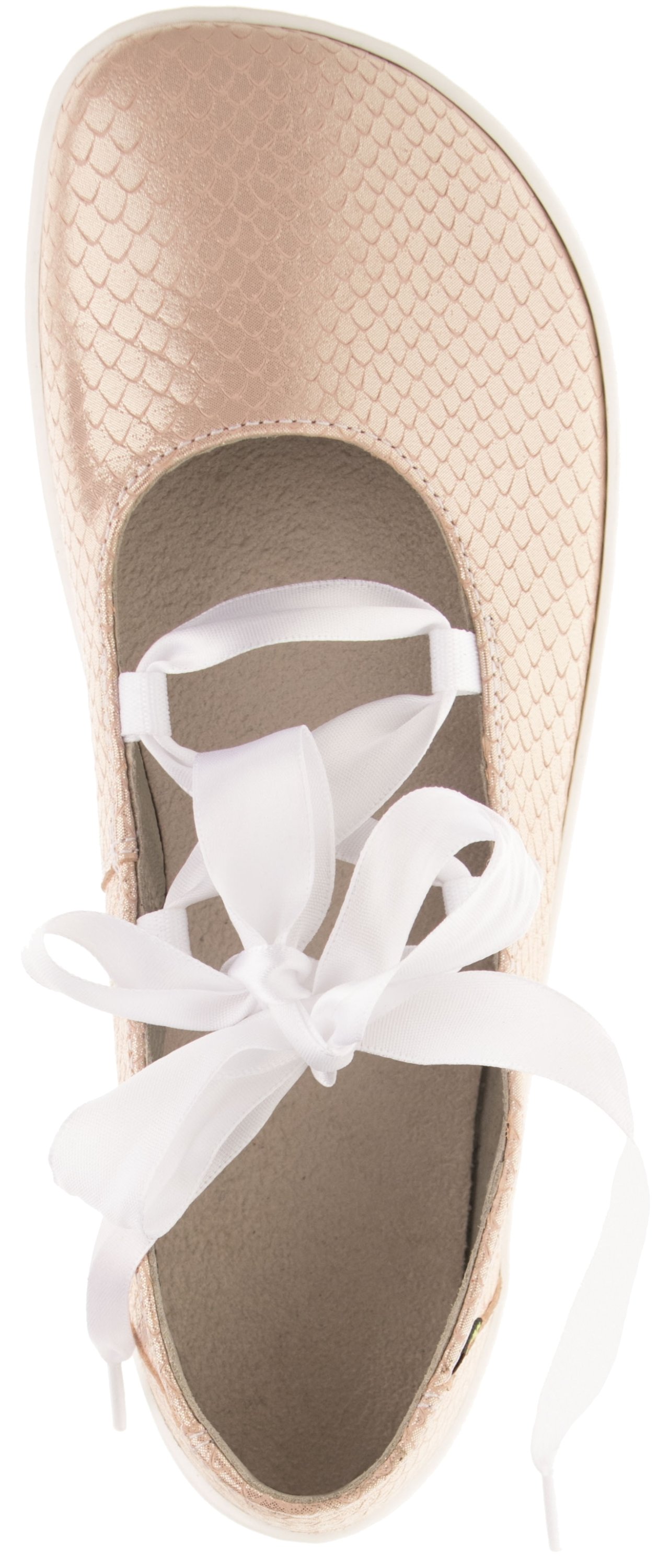 Flexibilní barefoot podešev FARESOLE VIBE podporuje přirozený pohyb chodidla a přispívá k pohodlnému kroku při běžném nošení. Zavazování pomocí stuhy umožňuje jemné přizpůsobení na noze a zároveň dodává obuvi jemný ženský detail.