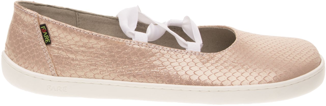 Flexibilní barefoot podešev FARESOLE VIBE podporuje přirozený pohyb chodidla a přispívá k pohodlnému kroku při běžném nošení. Zavazování pomocí stuhy umožňuje jemné přizpůsobení na noze a zároveň dodává obuvi jemný ženský detail.