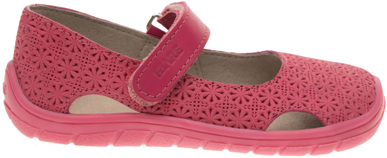 Kouzelná kombinace sandálků a balerín v jednom. Tyto elegantní růžové barefoot boty z měkké kůže s jemným koženým páskem na suchý zip a a květinovou ražbou padnou jako ulité – zvlášť dívčím nožkám, které potřebují víc prostoru vpředu. Ideální k šatům i 3/4 kalhotám – lehké, krásně ohebné a dokonale flexibilní. Díky dvěma stélkám si snadno upravíte prostor uvnitř boty podle potřeby. FARE BARE nabízí pohodlí, které podporuje zdravý vývoj dětské nohy – s respektem k jejímu přirozenému tvaru. Oblíbený model malých princezen, které chtějí být šik a zároveň volně běhat celý den.