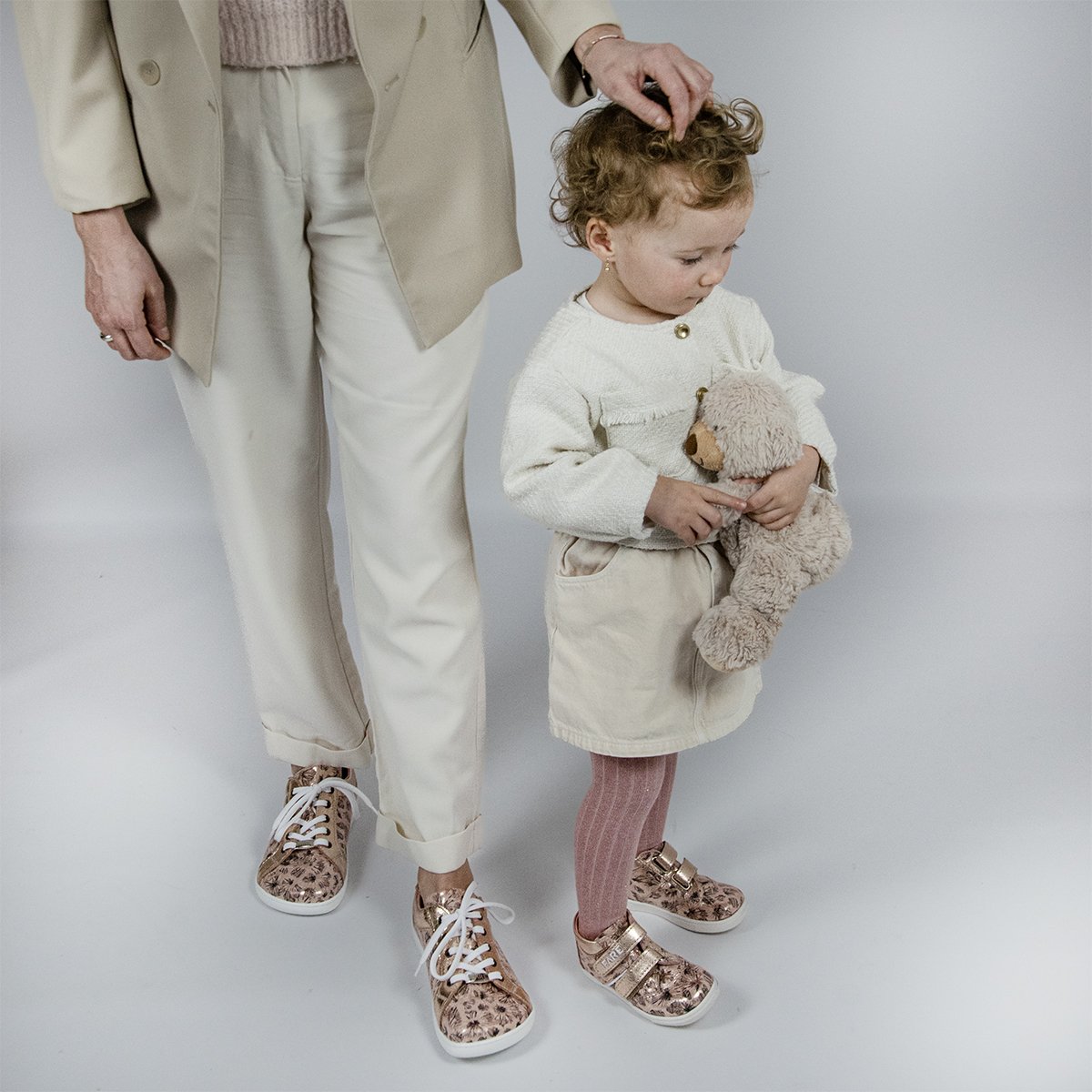 Svršek z pravé hladké hovězinové kůže s květinovým vzorem zajišťuje dostatečnou odolnost a zároveň jemně výrazný vzhled. Anatomický barefoot tvar poskytuje dostatek prostoru pro prsty a podporuje jejich přirozenou práci při chůzi. Střih je vhodný pro středně vysoký a vyšší nárt, což napomáhá správnému usazení nohy v botě.