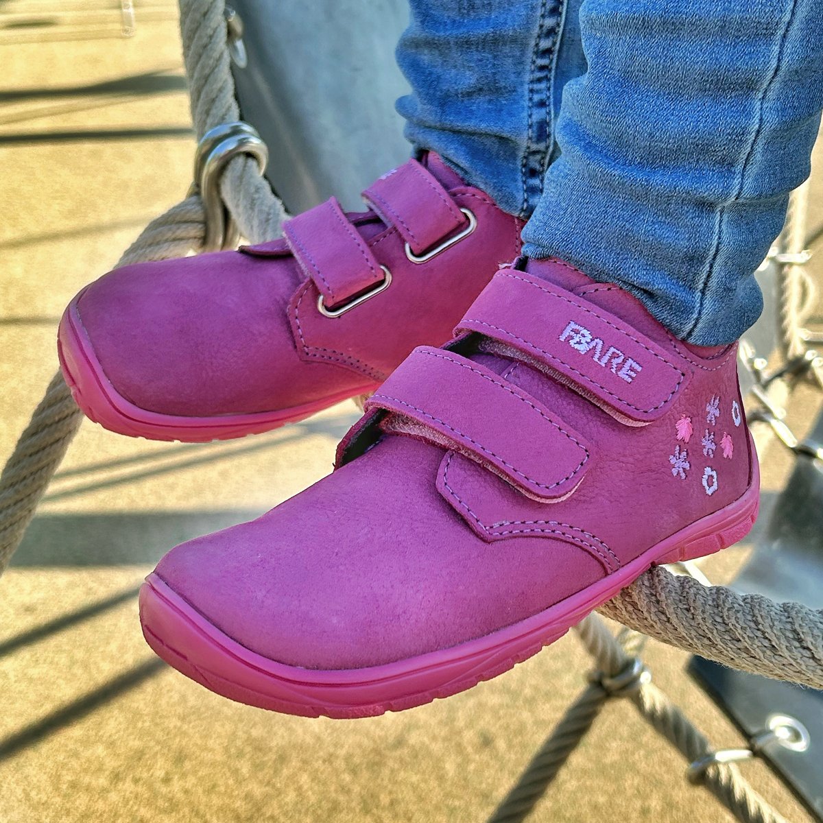 Flexibilní barefoot podešev FARESOLE SENSE se přizpůsobuje práci nohy při chůzi a poskytuje potřebnou míru ochrany při každodenním používání. Zapínání na suchý zip usnadňuje obouvání i zouvání a podporuje samostatnost dítěte při běžném nošení.