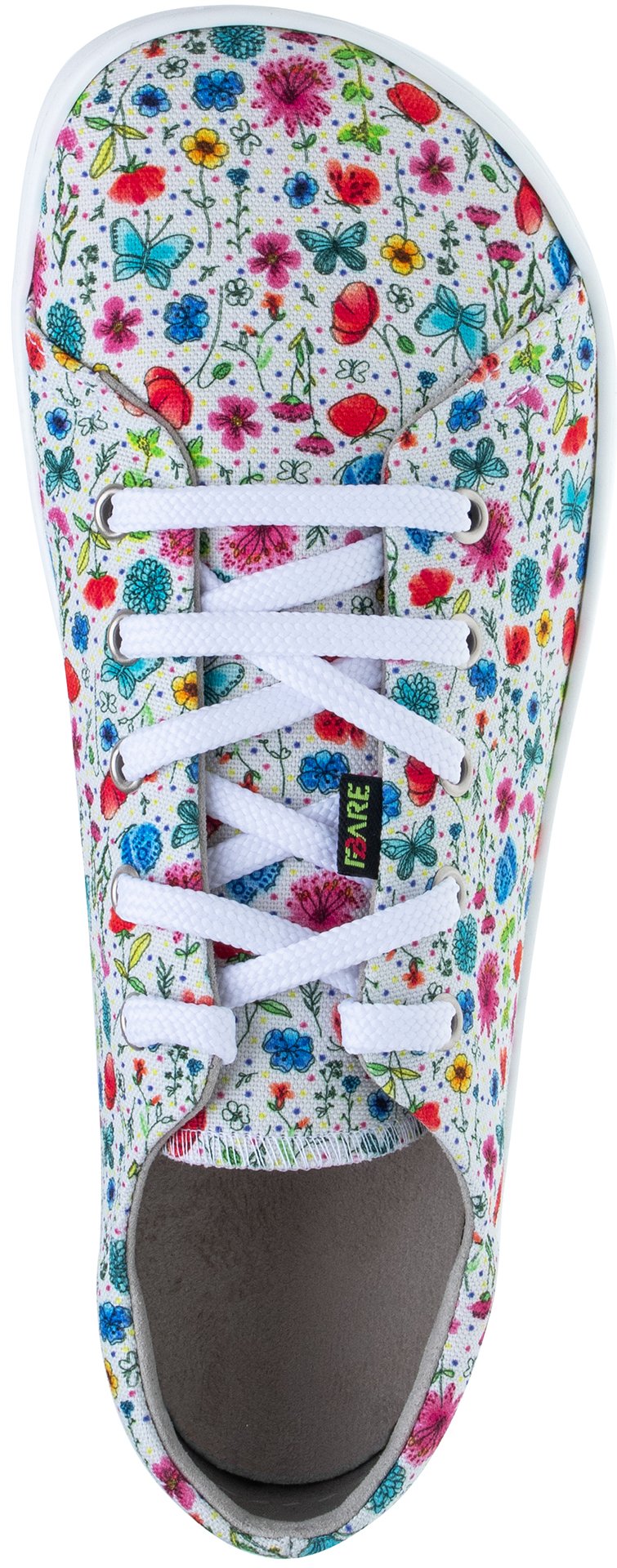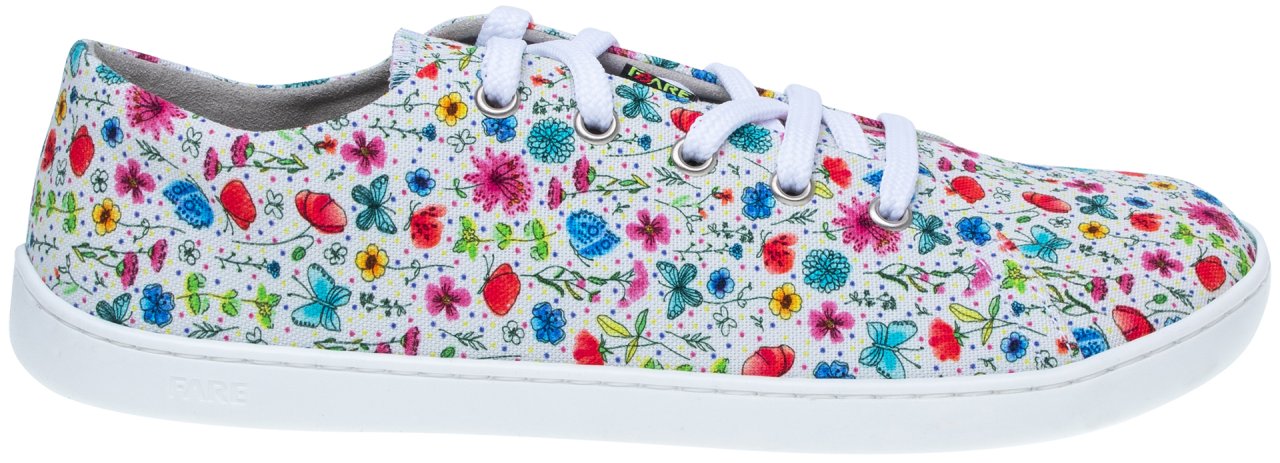 Textilní svršek s potiskem dodává obuvi hravý vzhled a zároveň zajišťuje dobrou prodyšnost. Střih je vhodný pro chodidla se středně vysokým až vyšším nártem a dobře se přizpůsobí jejich tvaru.