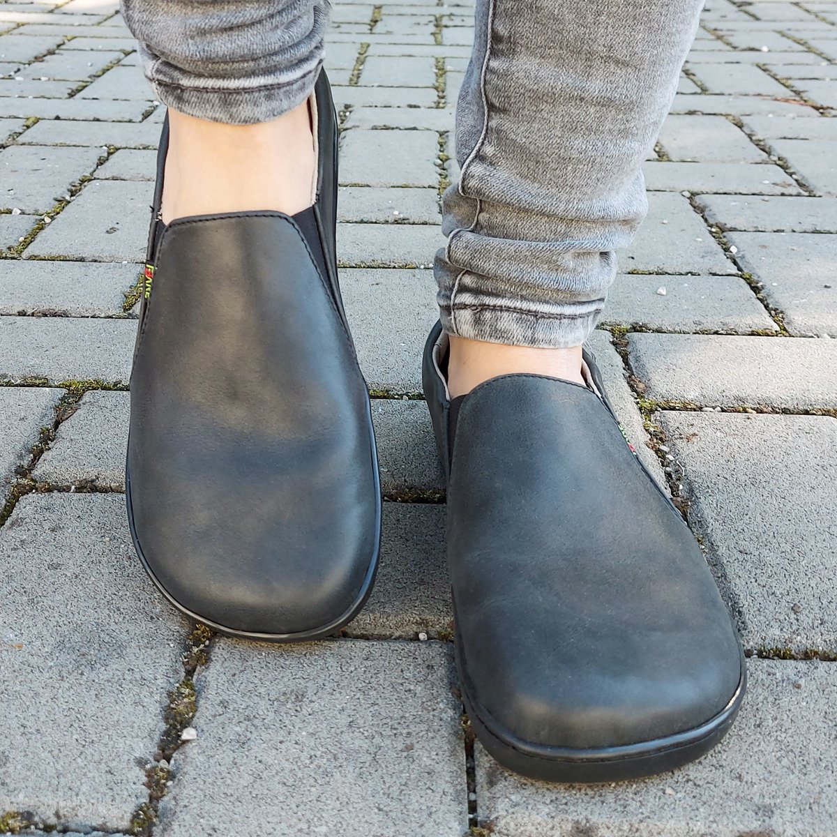 Nazouvací nízká štróblovaná obuv, na gumičku. Našívací (štróblovaná) stélka umožňuje lepší ohyb boty. Vrchový materiál: přírodní hovězinová useň lícová. Podšívka: textilní materiál s výbornými sacími schopnostmi. Podešev je vyrobena z termokaučuku, tudíž je podešev flexibilní ve všech směrech.