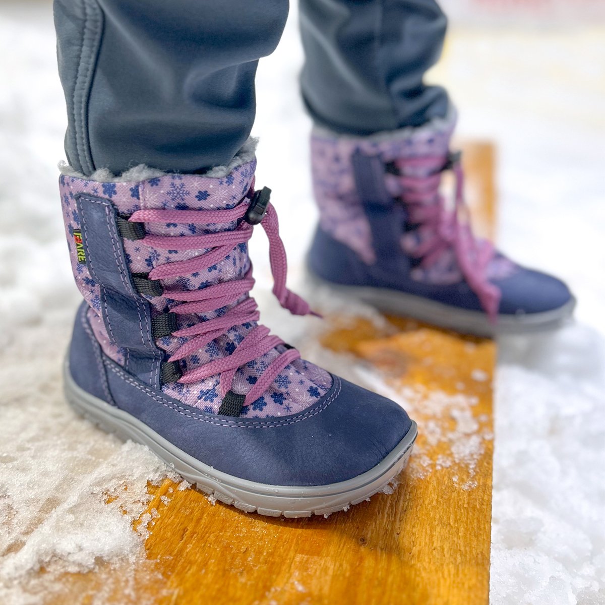 Flexibilní barefoot podešev FARESOLE MOTION podporuje přirozený pohyb chodidla a jeho aktivní práci i v zimním období. Tkanička s jezdcem umožňuje rychlé a přesné dotažení obuvi a přizpůsobení noze. Jemný zimní motiv doplňuje funkční charakter obuvi a podtrhuje její hravý vzhled.