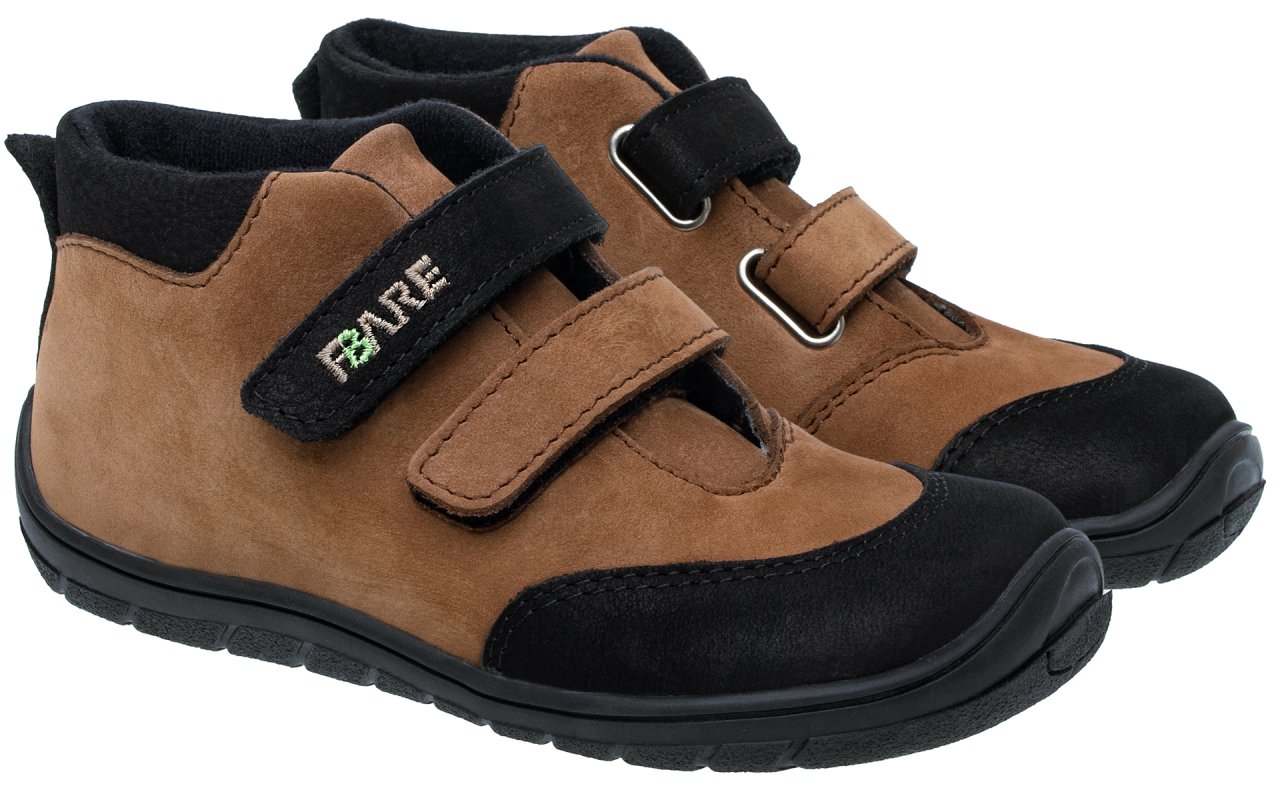 Svršek z pravé hovězinové kůže typu nubuk poskytuje dostatečnou odolnost a zároveň příjemný pocit při nošení. Anatomický barefoot tvar nabízí dostatek prostoru pro prsty a umožňuje jejich přirozenou práci při chůzi. Střih je vhodný pro nízký a středně vysoký nárt a úzkou patu, což pomáhá správnému usazení nohy v botě bez zbytečného tlaku.
