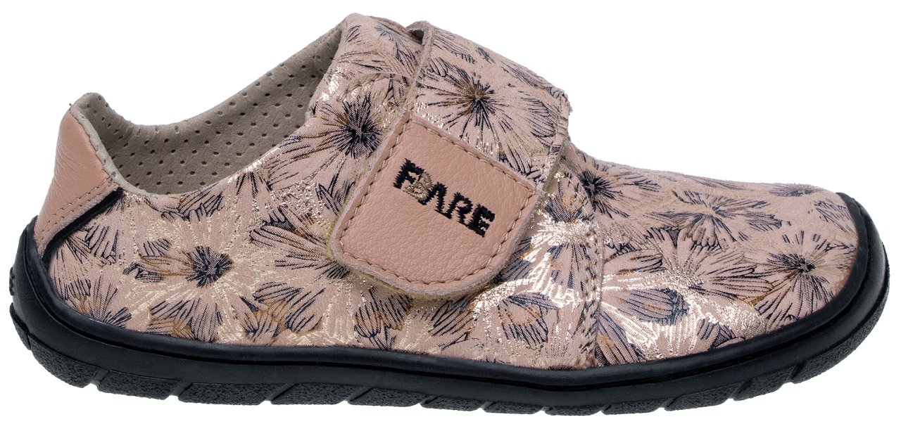 Tyto modely typové řady FARE BARE se odlišují od běžné klasické produkce především výrazně větším prostorem v prstové části. Mají ambici neomezovat vývoj nohy zejména v přední části chodidla, kde poskytují mnohem větší prostor. Vynikají také svojí lehkostí a vysokou flexibilitou. Svršková část obuvi je zhotovena z usně s potiskem květů, které jistě zaujmou každou malou parádnici. Podešev je vyrobena z termokaučuku, který je velmi flexibilní. Tato obuv je proto velmi ohebná nejen příčně, ale i podélně.
