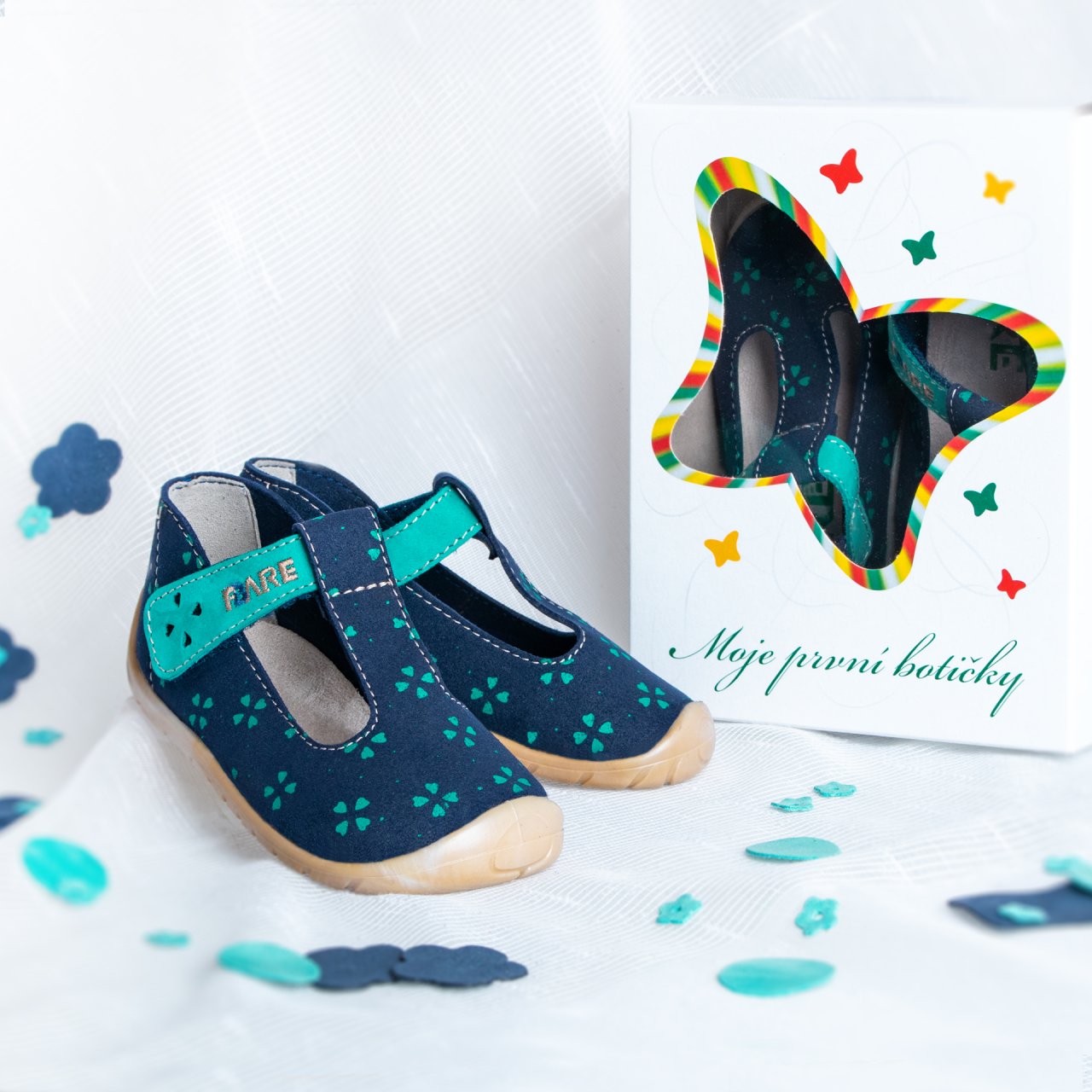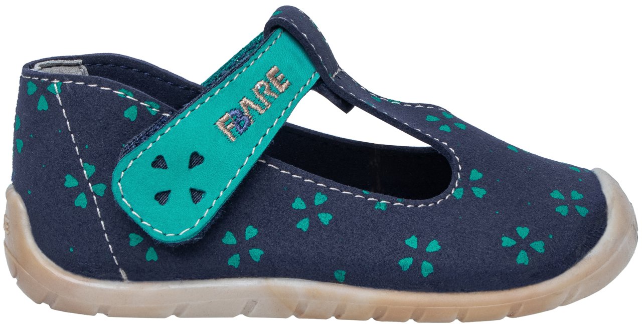 Lehoučké, flexibilní, s anatomickým tvarem a nulovým dropem – ideální pro první krůčky. Stylové textilní sandálky s kombinací pásku z úsně. Sandálky pro děti se vzory srdíček a čtyřlístků v tmavě modré barvě. Díky praktickému střihu je snadno nazujete a přizpůsobíte dětské nožce. Dodáváno v krásné dárkové krabičce.