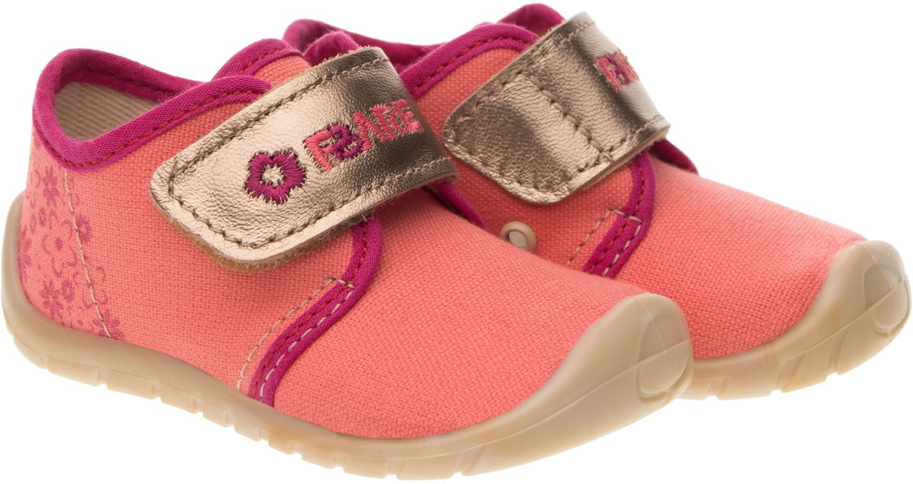 Dětská štróblovaná obuv na suchý zip. Našívací (štróblovaná) stélka umožňuje lepší ohyb boty. Vrchový materiál: textil. Podšívka: bez podšívky. Podešev je vyrobena z termokaučuku, který je velmi flexibilní příčně, ale i podélně.
