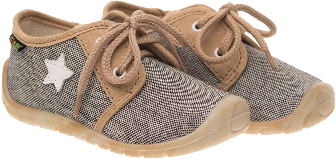 Dětská štróblovaná obuv, šněrovací. Našívací (štróblovaná) stélka umožňuje lepší ohyb boty. Vrchový materiál: textil. Podšívka: bez podšívky. Podešev je vyrobena z termokaučuku, který je velmi flexibilní příčně, ale i podélně.