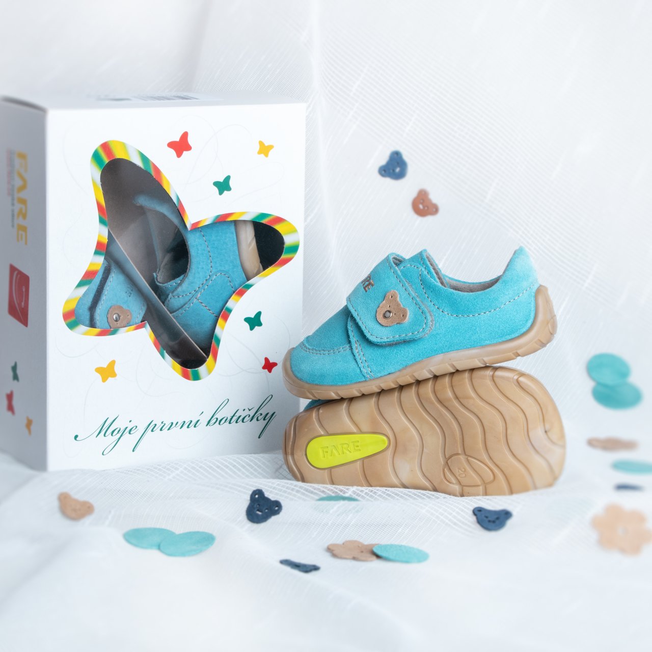 Flexibilní barefoot podešev FARESOLE SOFT podporuje přirozenou práci chodidla a vnímání povrchu. Obuv je dodávána v dárkovém balení, které podtrhuje její celkový charakter.