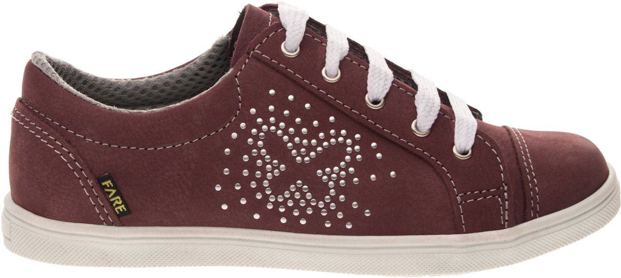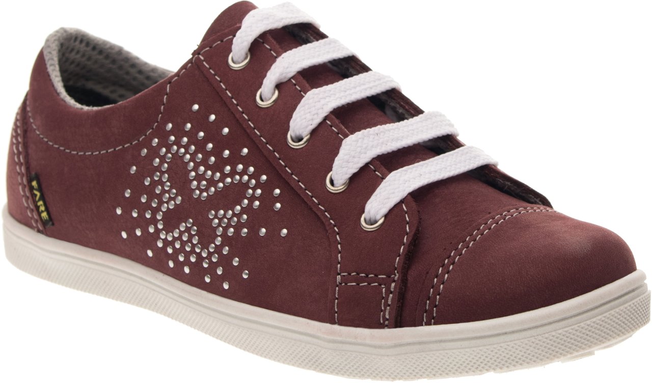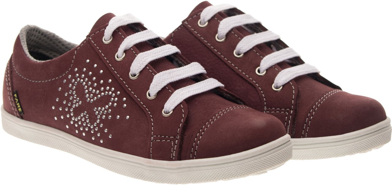 Celoroční, vycházková obuv, nízká, šněrovací. Vrchový materiál - pravá kůže broušená. Podšívka - textilní. Podešev je z termoplastického kaučuku s módním dezénem a zvednutou špicí. Obuv má pevný opatek i špici, předností je vyjímatelná vkládací stélka.