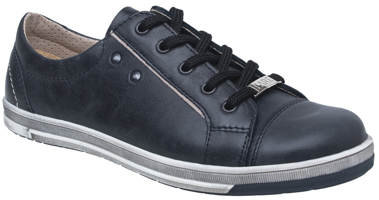 Celoroční vycházková obuv FARE KLASIK nízká, šněrovací. Vrchový materiál: přírodní hovězinová useň hladká. Podšívka je z textilního materiálu perforovaná s výbornými sacími vlastnostmi. Podešev je z TPE s vysokým lemem. Obuv má pevný opatek i špici, předností je vyjímatelná vkládací stélka. Bota se hodí jak pro děti, tak pro dospělé, protože černá klasika sluší všem.