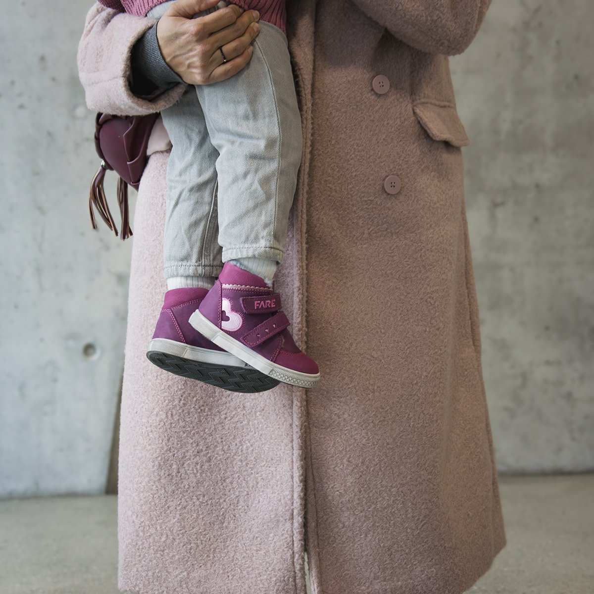 Zimní boty z úsně v dívčí kotníčkové boty v burgundové barvě s ozdobným páskem, růžovým prošitím a výšivkou loga. Pohodlné zapínání na suchý zip zajistí snadné obouvání, plyšová podšívka udrží nohy v teple i v chladivých dnech. Velikostní tabulku s přesnými rozměry pro přeměření chodidla naleznete níže.