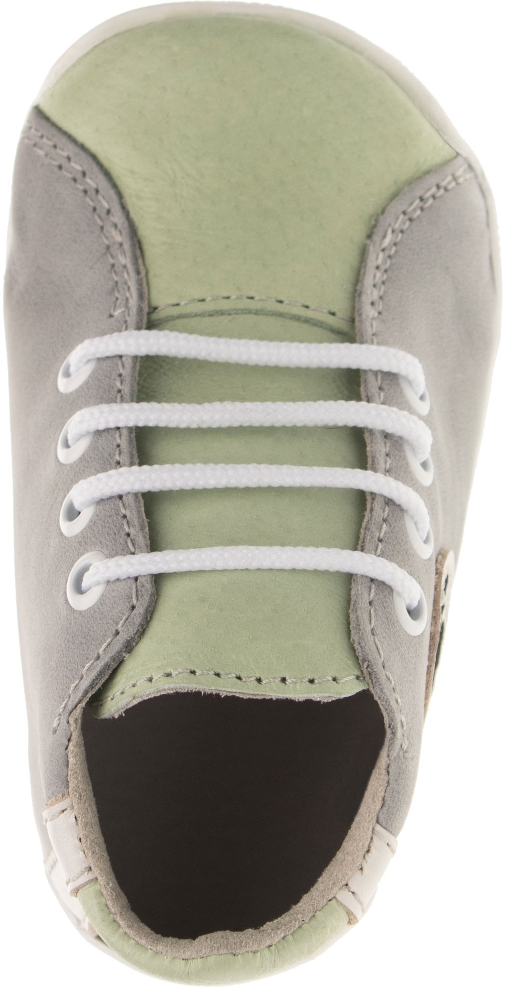 Lehká, kotníčková obuv, šněrovací, maximálně ohebná, určená pro první dětské krůčky, kdy si dítě začíná zvykat na pevnou obuv.Vrchový materiál – pravá kůže, lícová. Podšívka - netkaná textilie. Předností je vyjímatelná vkládací stélka. Podešev je z přírodní štípenky, obuv je určena do interiérového prostředí.