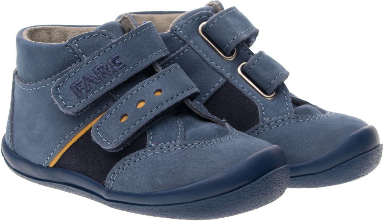 Pevná, kotníčková obuv, na velcro. Vrchový materiál - Vrchový materiál - nubuk. Podšívka - netkaná textilie. Podešev je z termoplastického kaučuku s módní povrchovou úpravou. Předností je vyjímatelná vkládací stélka a pevný opatek i špice.