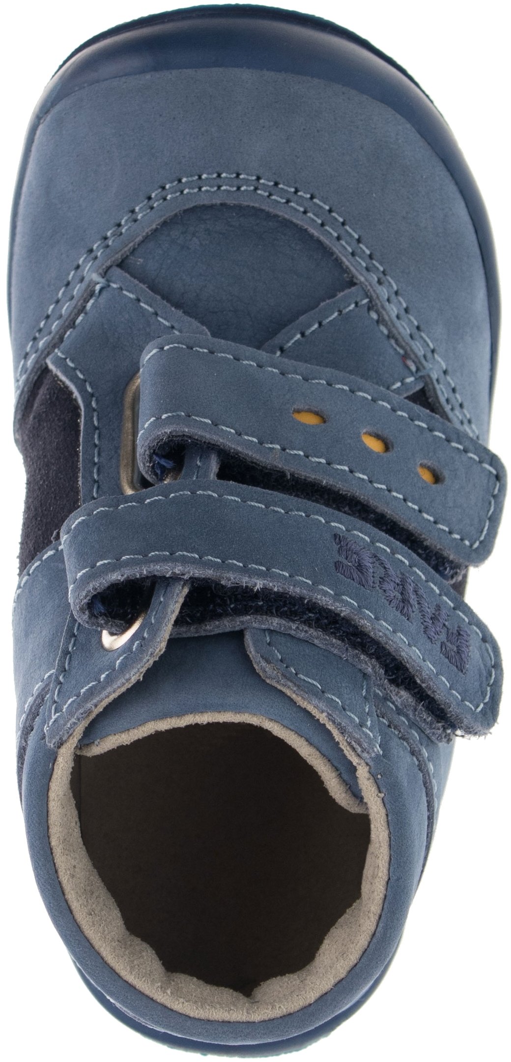 Pevná, kotníčková obuv, na velcro. Vrchový materiál - Vrchový materiál - nubuk. Podšívka - netkaná textilie. Podešev je z termoplastického kaučuku s módní povrchovou úpravou. Předností je vyjímatelná vkládací stélka a pevný opatek i špice.