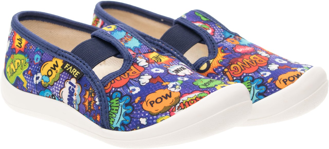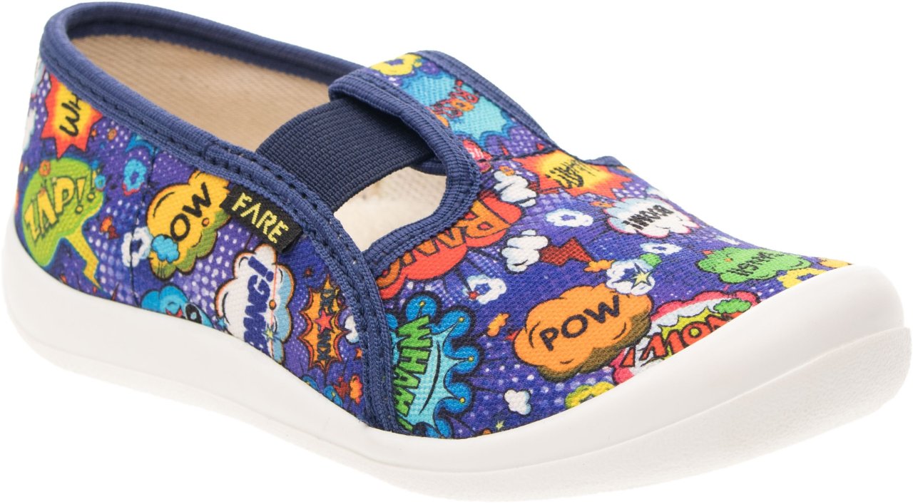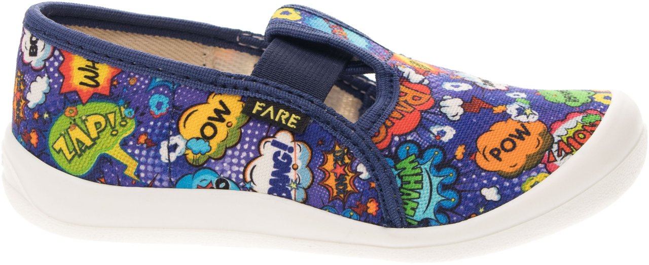 Podešev FARESOLE AMY poskytuje potřebnou oporu a odolnost při běžném používání. Zapínání na gumičku usnadňuje obouvání i zouvání a podporuje samostatnost dítěte při každodenním nošení.Low slippers from the brand FARE KLASIK.