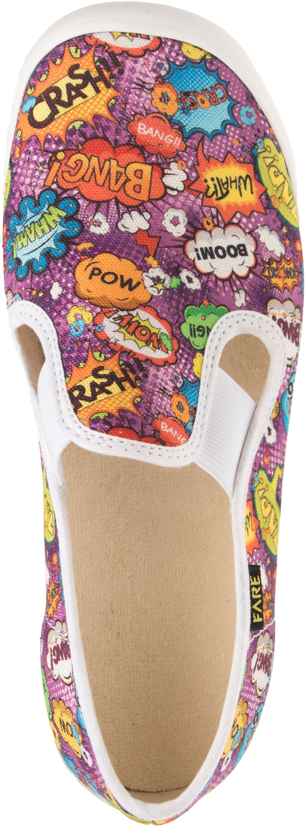 Podešev FARESOLE LINE poskytuje potřebnou oporu a odolnost při běžném používání. Zapínání na gumičku usnadňuje obouvání i zouvání a podporuje samostatnost dítěte při každodenním nošení.Low slippers from the brand FARE KLASIK.