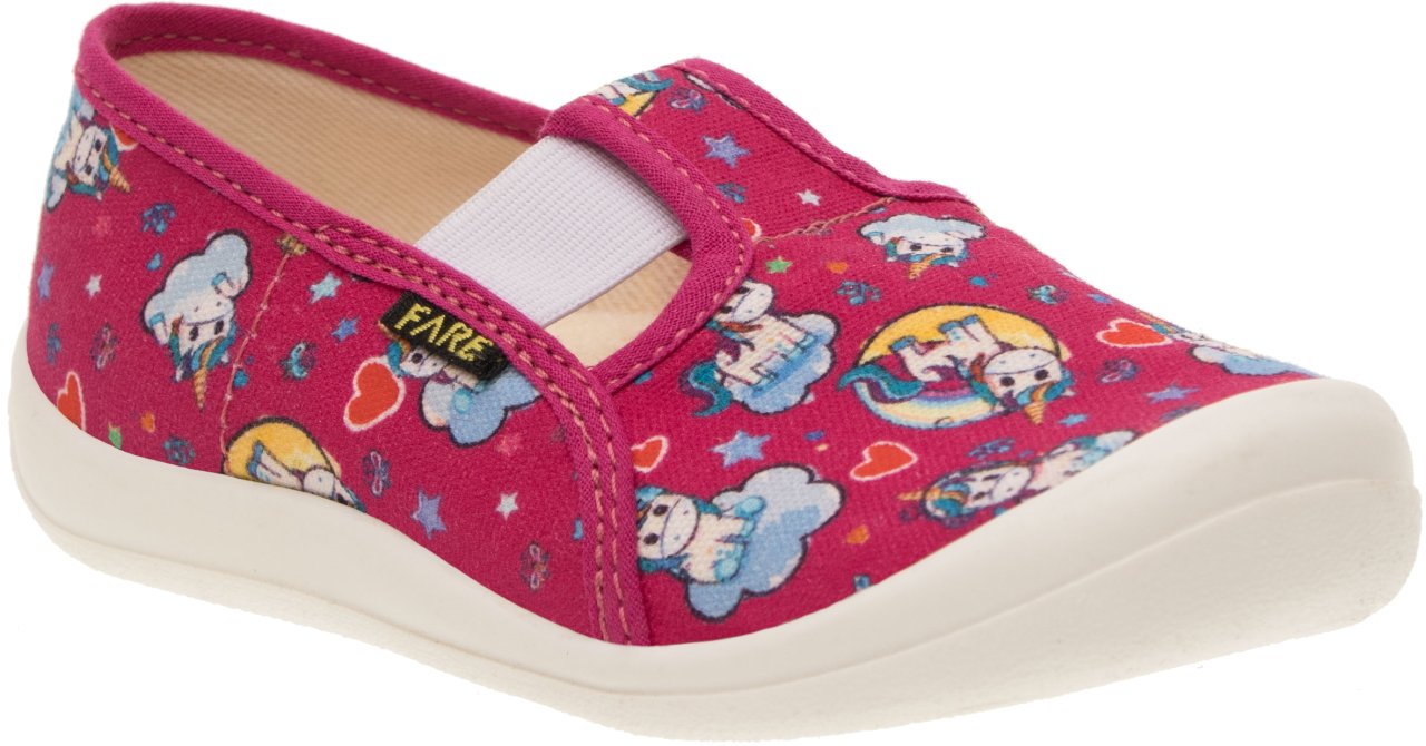 Podešev FARESOLE AMY poskytuje potřebnou oporu a odolnost při běžném používání. Zapínání na gumičku usnadňuje obouvání i zouvání a podporuje samostatnost dítěte při každodenním nošení.Low slippers from the brand FARE KLASIK.