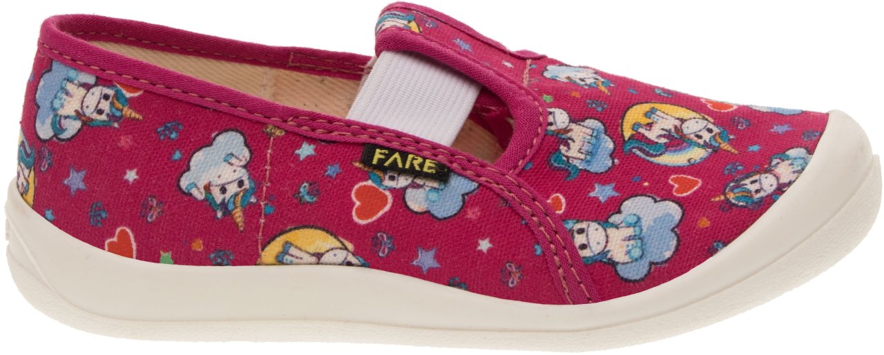 Podešev FARESOLE AMY poskytuje potřebnou oporu a odolnost při běžném používání. Zapínání na gumičku usnadňuje obouvání i zouvání a podporuje samostatnost dítěte při každodenním nošení.Low slippers from the brand FARE KLASIK.