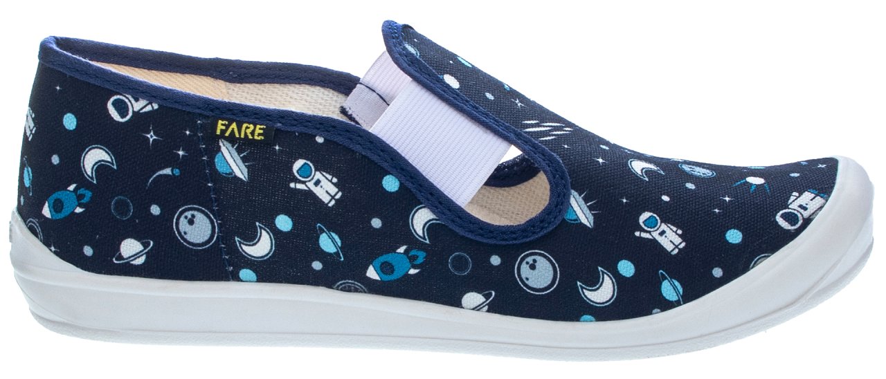 Podešev FARESOLE LINE poskytuje potřebnou oporu a odolnost při běžném používání. Zapínání na gumičku usnadňuje obouvání i zouvání a podporuje samostatnost dítěte při každodenním nošení.Low slippers from the brand FARE KLASIK.