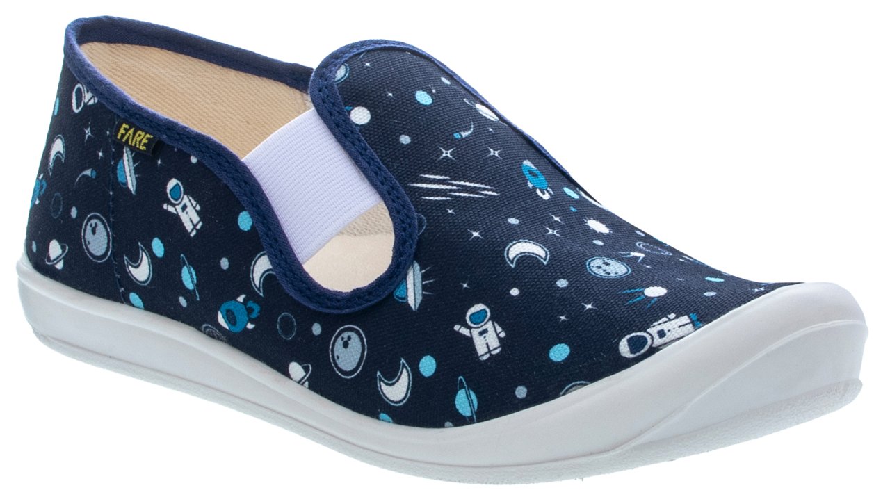 Podešev FARESOLE LINE poskytuje potřebnou oporu a odolnost při běžném používání. Zapínání na gumičku usnadňuje obouvání i zouvání a podporuje samostatnost dítěte při každodenním nošení.Low slippers from the brand FARE KLASIK.