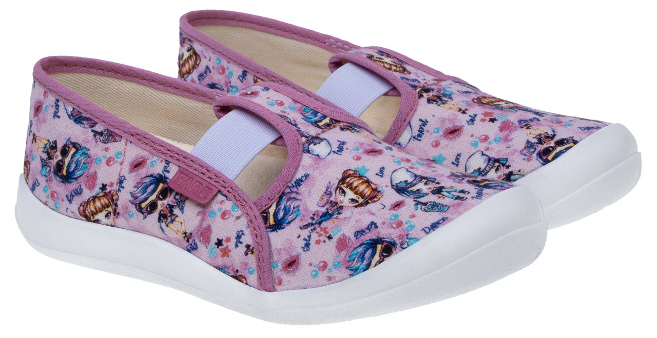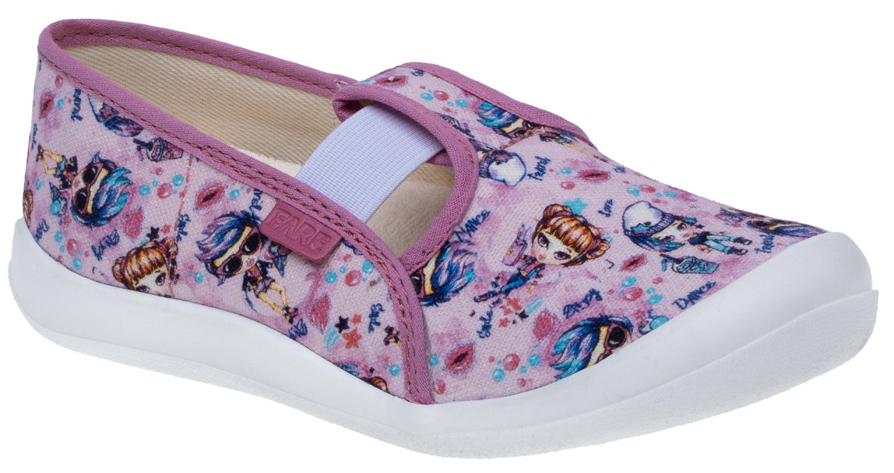 Podešev FARESOLE AMY poskytuje potřebnou oporu a odolnost při běžném používání. Zapínání na gumičku usnadňuje obouvání i zouvání a podporuje samostatnost dítěte při každodenním nošení.Low slippers from the brand FARE KLASIK.