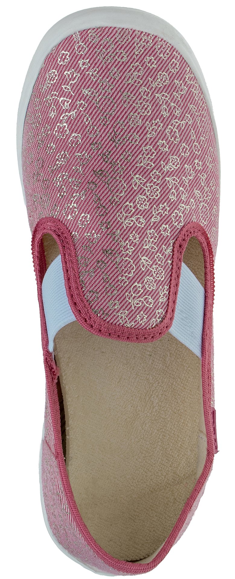 Textilní svršek je lehký a prodyšný a zajišťuje příjemný komfort během celého dne. Froté vkládací stélka s podporou klenby přispívá k pohodlí při chůzi a je vhodná pro delší nošení. Pevná patička pomáhá udržet patu ve správné poloze a podporuje jistější krok.