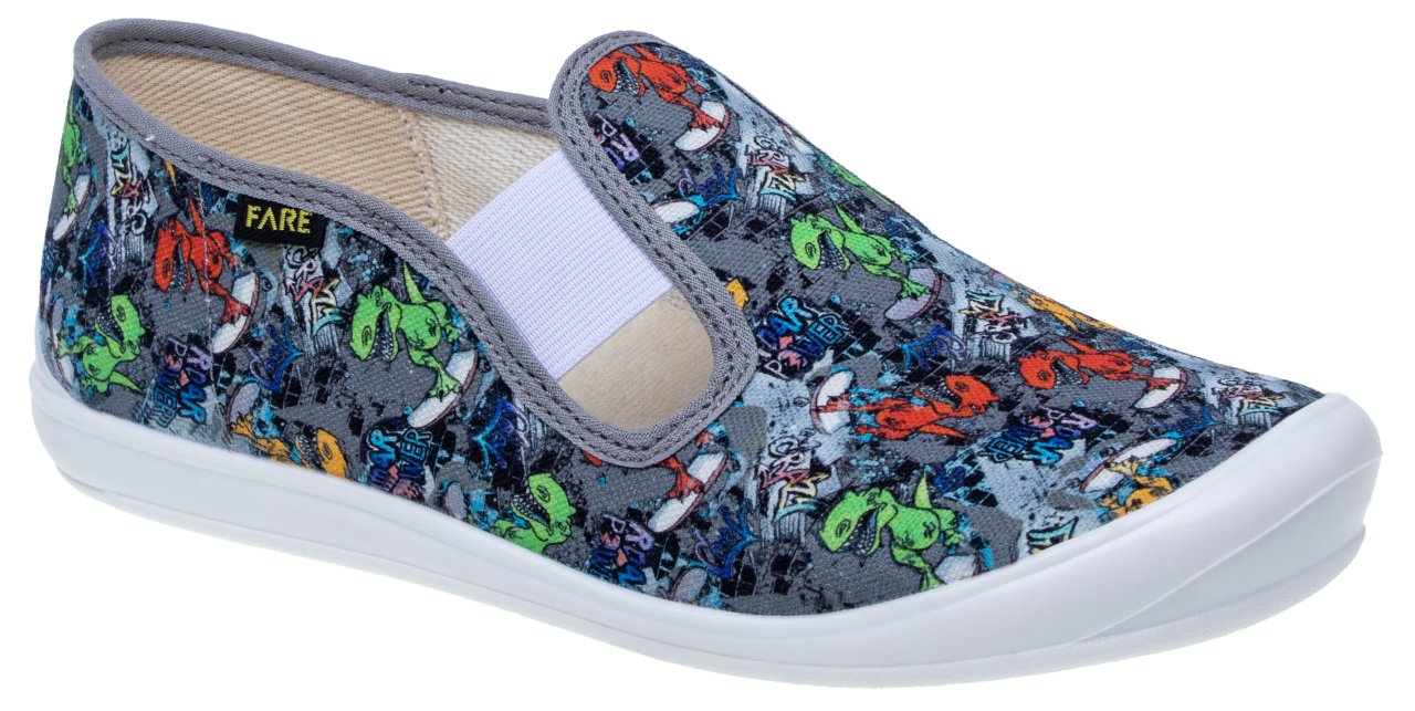 Podešev FARESOLE LINE poskytuje potřebnou oporu a odolnost při běžném používání. Zapínání na gumičku usnadňuje obouvání i zouvání a podporuje samostatnost dítěte při každodenním nošení.Low slippers from the brand FARE KLASIK.