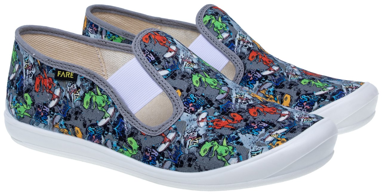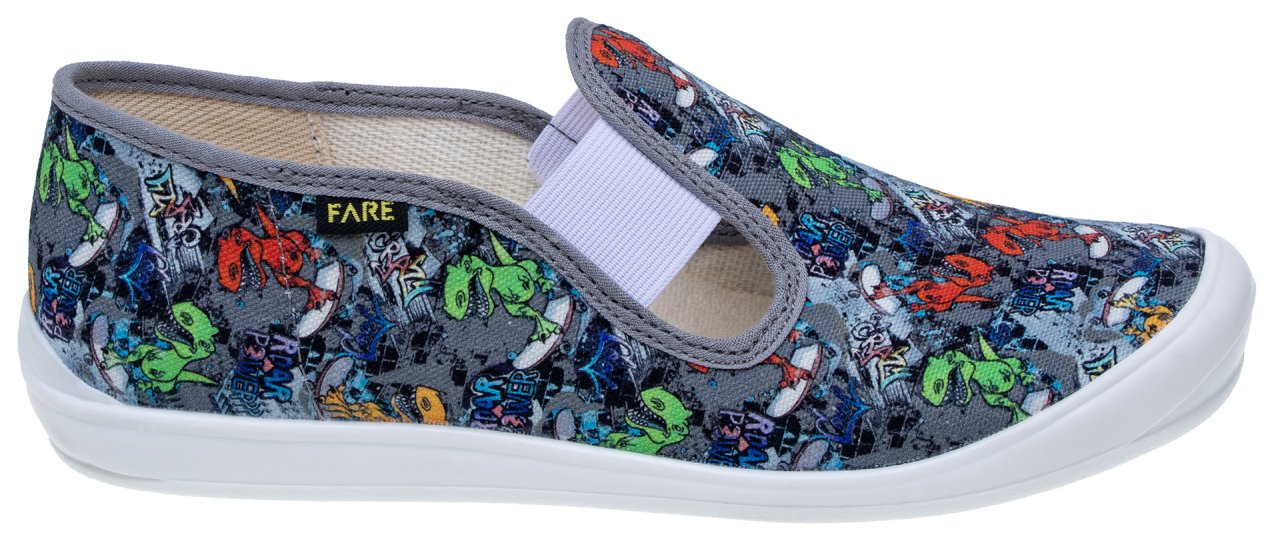 Podešev FARESOLE LINE poskytuje potřebnou oporu a odolnost při běžném používání. Zapínání na gumičku usnadňuje obouvání i zouvání a podporuje samostatnost dítěte při každodenním nošení.Low slippers from the brand FARE KLASIK.