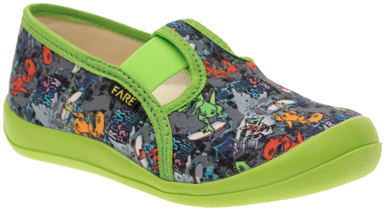 Podešev FARESOLE AMY poskytuje potřebnou oporu a odolnost při běžném používání. Zapínání na gumičku usnadňuje obouvání i zouvání a podporuje samostatnost dítěte při každodenním nošení.Low slippers from the brand FARE KLASIK.
