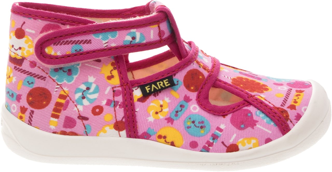 Přezůvková, kotníčková, textilní, lemovaná obuv na suchý zip. Materiál svršku je z barevného pracího kordu, vnitřek je z bavlněného kepru. Podešev je vyvinuta jako odlehčená, materiál podešve z termoplastického elastomeru, je neklouzavá pro všechny běžně používané podlahoviny. Tato domácí a přezůvková obuv odpovídá ortopedickým požadavkům a zásadám zdravého obouvání. Obuv je v prstové části prostorově vytvarována, je vybavena pevným opatkem. Vkládací stélka je vybavena komfortní tlumící vrstvou. Obuv je designována v souladu s módními trendy včetně podešve, která chrání přední část před rychlým opotřebením.