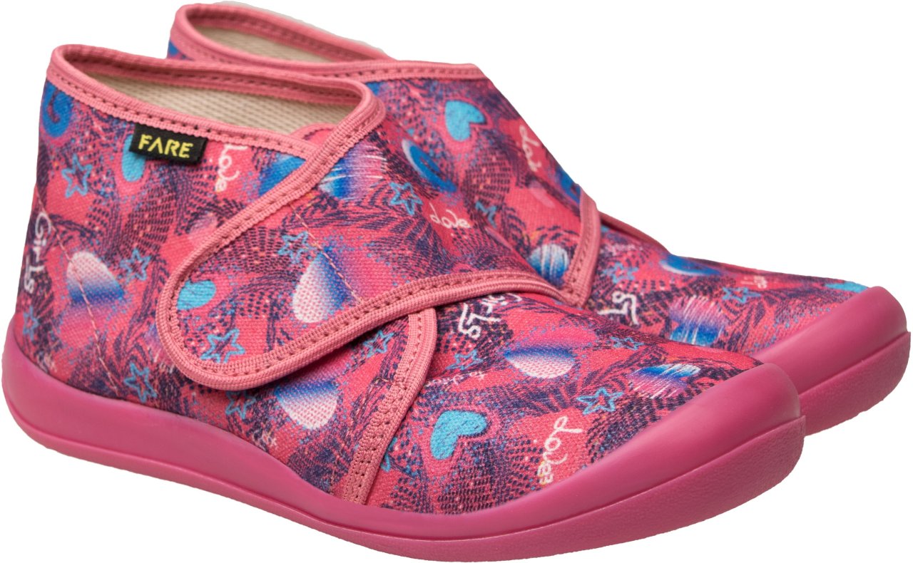 FARE KLASIK Dětské papuče na suchý zip růžové