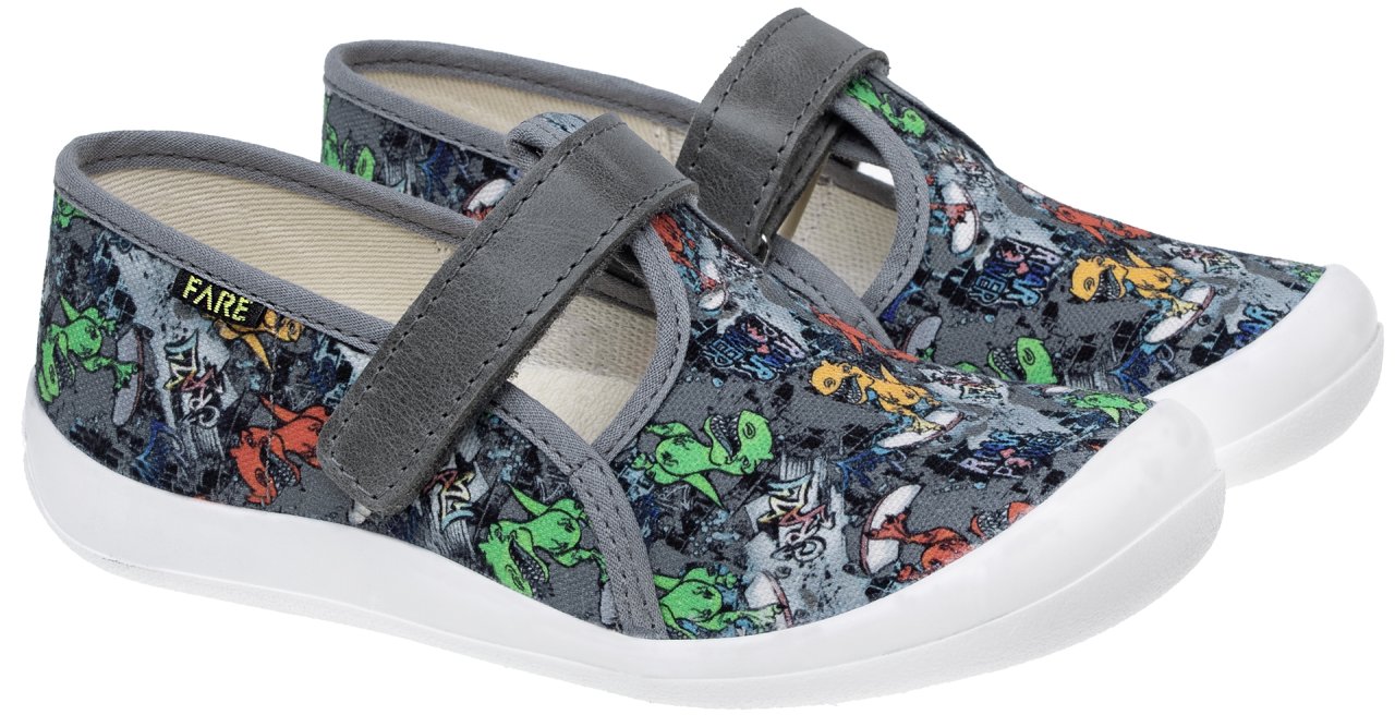 FARE KLASIK dětské papuče na suchý zip šedé
