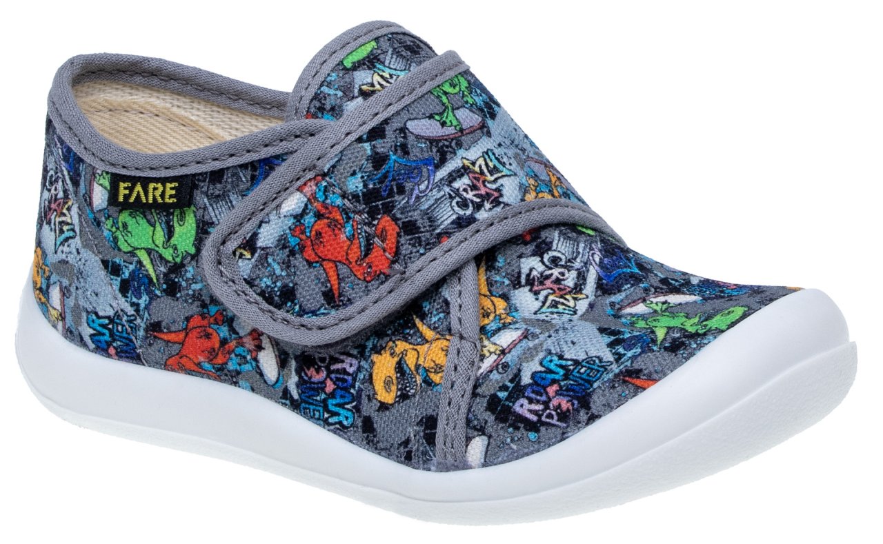 FARE KLASIK Dětské papuče na suchý zip šedé
