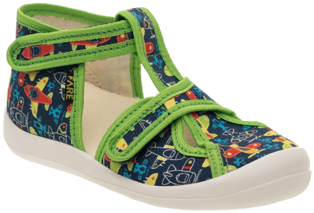 FARE KLASIK Dětské papuče na suchý zip zelené