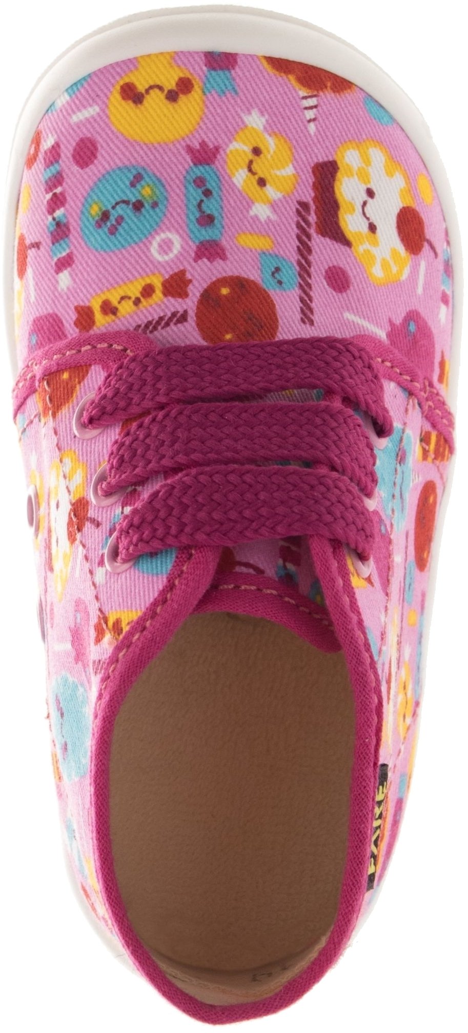 Přezůvková, kotníčková, textilní, lemovaná obuv, šněrovací. Materiál svršku je z barevného pracího kordu, vnitřek je z bavlněného kepru. Podešev je vyvinuta jako odlehčená, materiál podešve z termoplastického elastomeru, je neklouzavá pro všechny běžně používané podlahoviny. Tato domácí a přezůvková obuv odpovídá ortopedickým požadavkům a zásadám zdravého obouvání. Obuv je v prstové části prostorově vytvarována, je vybavena pevným opatkem tak, jako je běžné u kvalitní celokožené obuvi. Vkládací stélka je vybavena komfortní tlumící vrstvou. Obuv je designována v souladu nejmodernějšími módními trendy, včetně podešve, která chrání přední část před rychlým opotřebením.