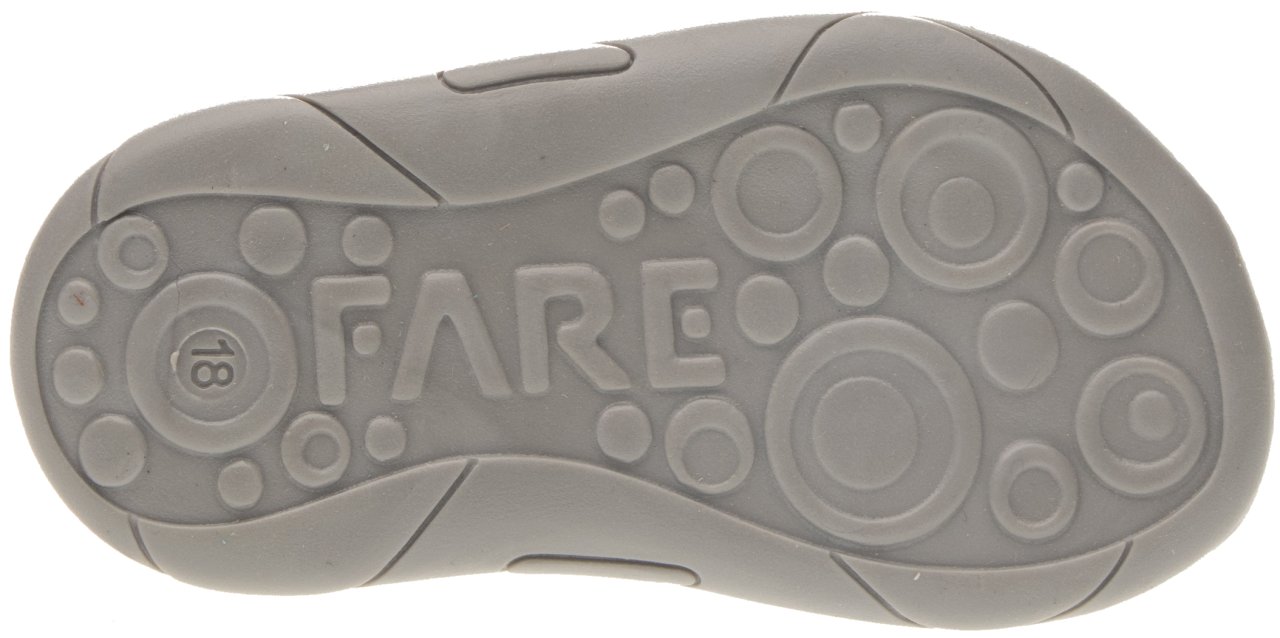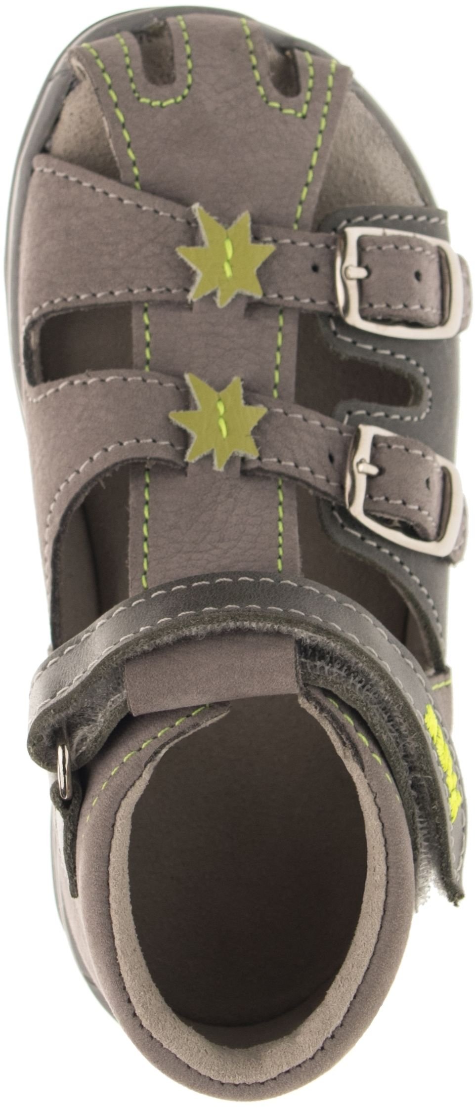 Sandálková obuv, zapínání na suchý zip. Vrchový materiál - pravá kůže hladká. Podšívka - pravá kůže. Podešev je z termoplastického kaučuku. Předností je vypolstrovaná stélka, částečně uzavřená špice, regulovatelnost obuvi přes nárt, pevný opatek a výška paty - v tomto věku dítěte velmi důležitá.