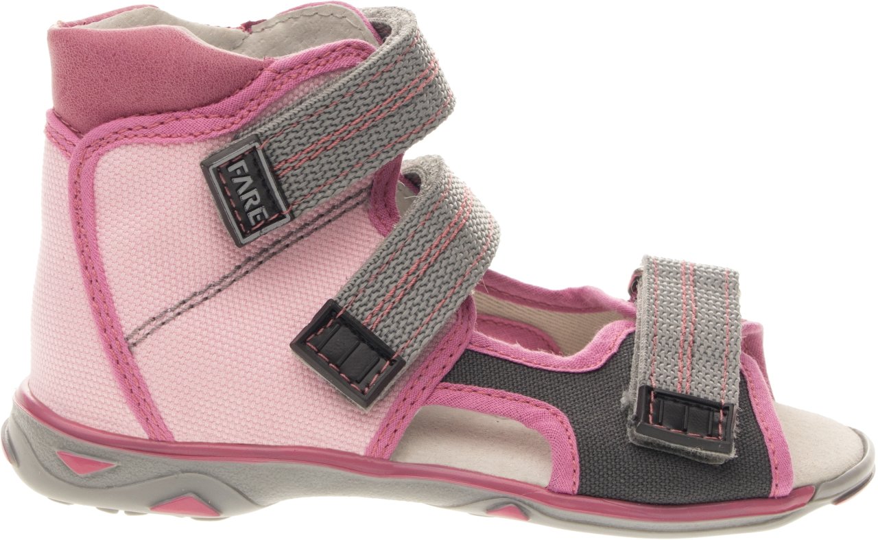 Sandálková obuv bez špice se zapínáním na velkro. Vrchový materiál - textil. Podšívka - pravá kůže. Podešev je z termoplastického kaučuku. Předností je vypolstrovaná stélka, regulovatelnost obuvi přes nárt a pevný opatek.
