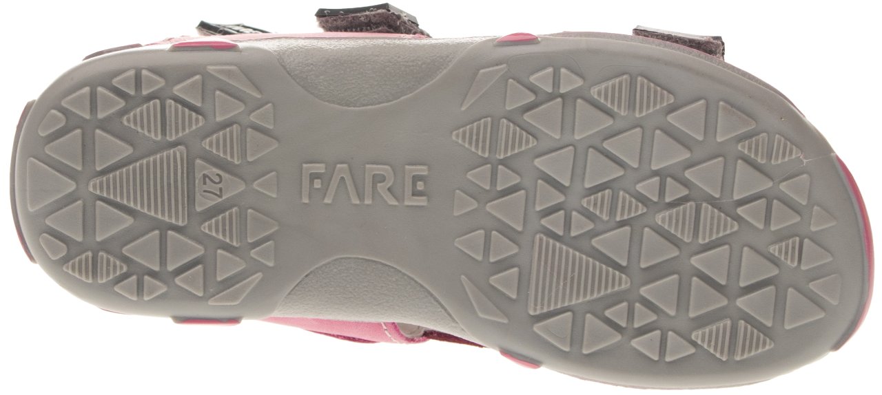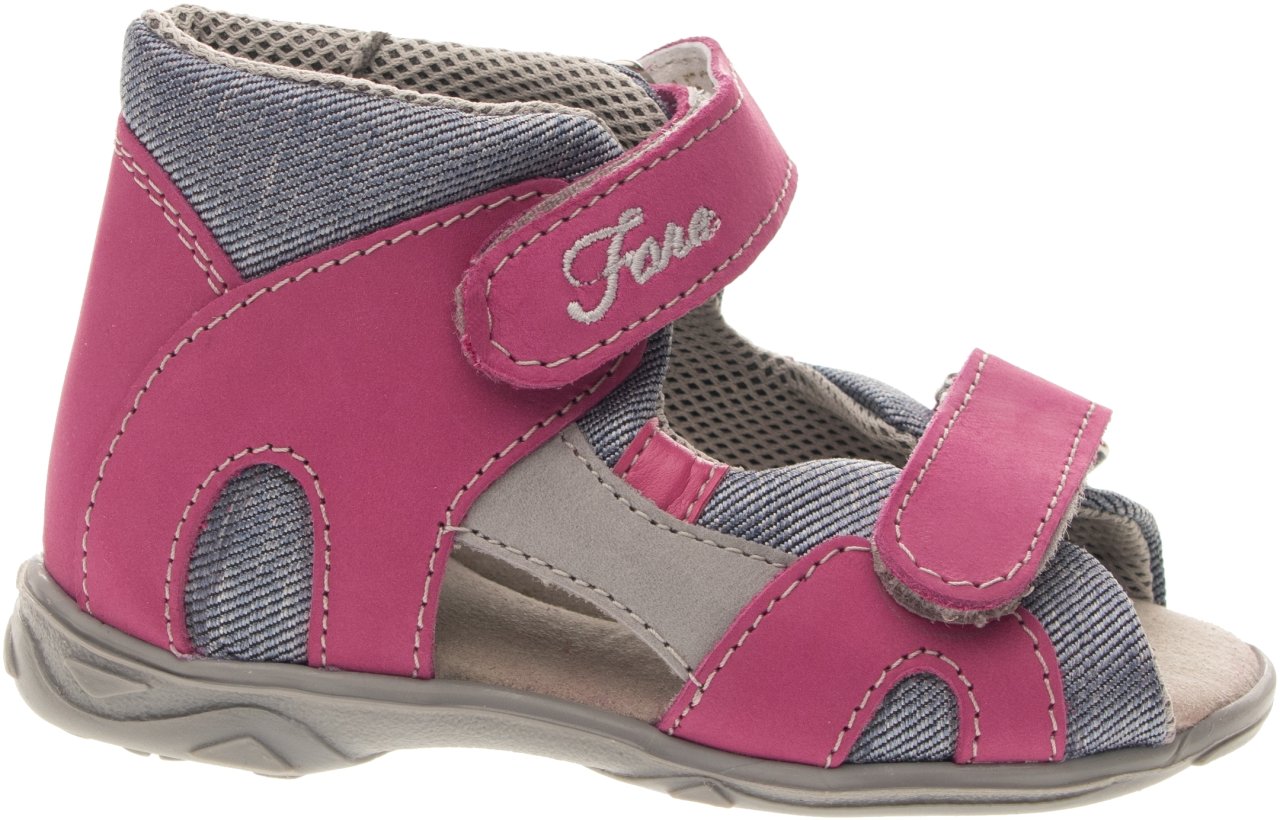 Sandálková obuv, zapínání na suchý zip. Vrchový materiál - pravá kůže broušená v kombinaci s textilem. Podšívka - textilní. Podešev je z termoplastického kaučuku. Předností je vypolstrovaná usňová stélka, regulovatelnost obuvi přes nárt, pevný opatek a výška paty.
