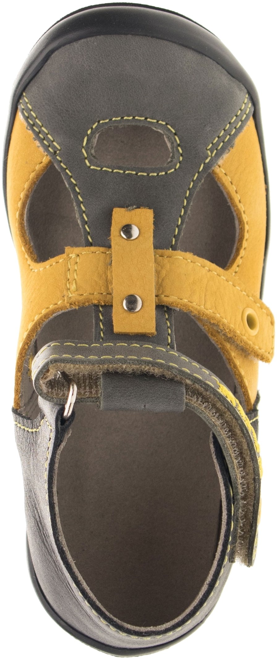 Letní obuv se zapínáním na suchý zip. Vrchový materiál: přírodní hovězinová useň lícová. Podšívka: textilní materiál s výbornými sacími schopnostmi. Podešev je z termoplastického kaučuku, barevně sladěná s vrchem. Předností je vyjímatelná vkládací stélka, pevný opatek a po rozepnutí maximální otevřenost obuvi.