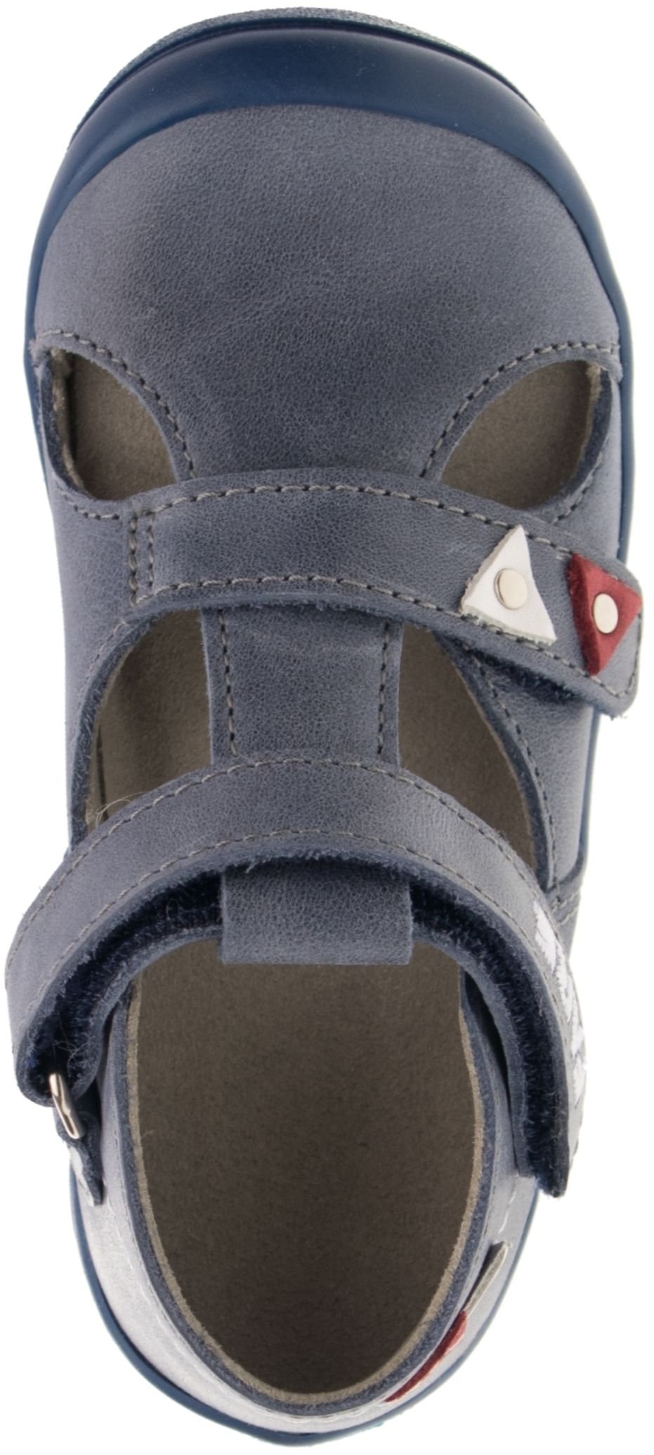 Letní obuv se zapínáním na suchý zip. Vrchový materiál: přírodní hovězinová useň lícová. Podšívka: textilní materiál s výbornými sacími schopnostmi. Podešev je z termoplastického kaučuku, barevně sladěná s vrchem. Předností je vyjímatelná vkládací stélka, pevný opatek a po rozepnutí maximální otevřenost obuvi.