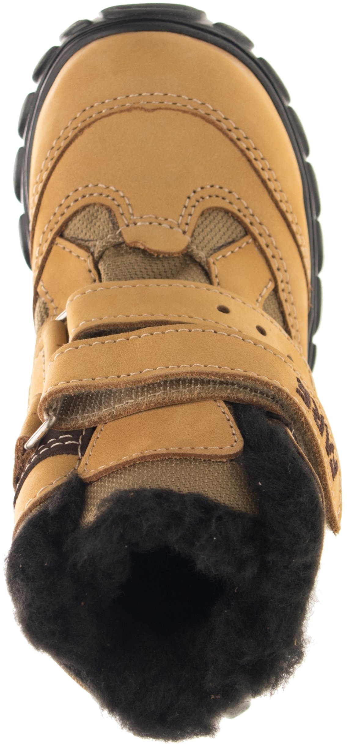Zimní treková kotníčková obuv se zapínáním na suchý zip. Vrchový materiál: přírodní hovězinová useň broušená (nubuk) v kombinaci s textilem. Podšívka je z hřejivého, vlasového materiálu.