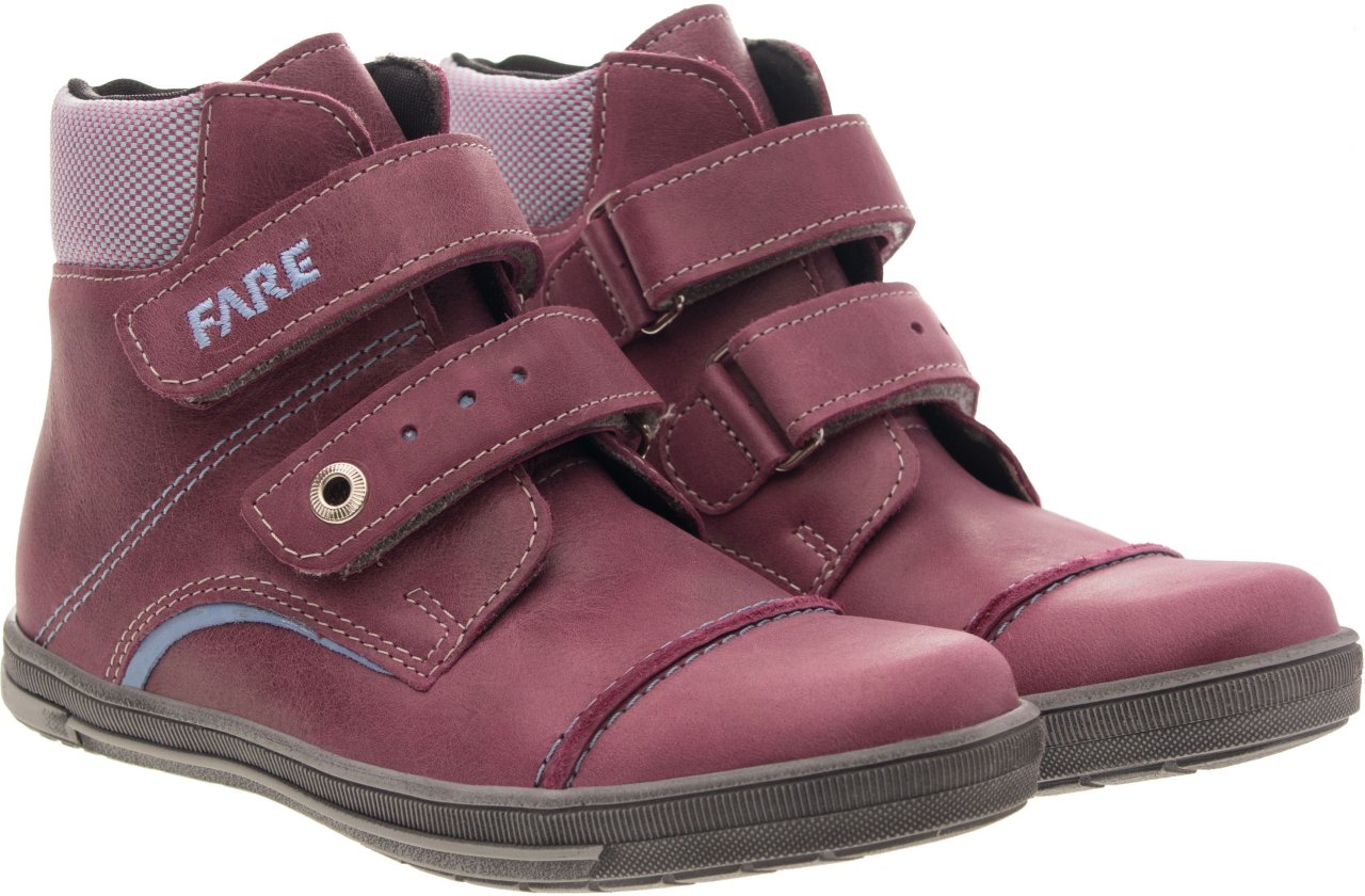 Celoroční, vycházková obuv kotníčková na velcro. Vrchový materiál - pravá kůže hladká. Podšívka je textilní s velmi dobrými sacími schopnostmi. Podešev je z termoplastického kaučuku , v módním designu. Obuv má pevný opatek i špici, předností je vyjímatelná vkládací stélka a široký, vybandážovaný límeček.