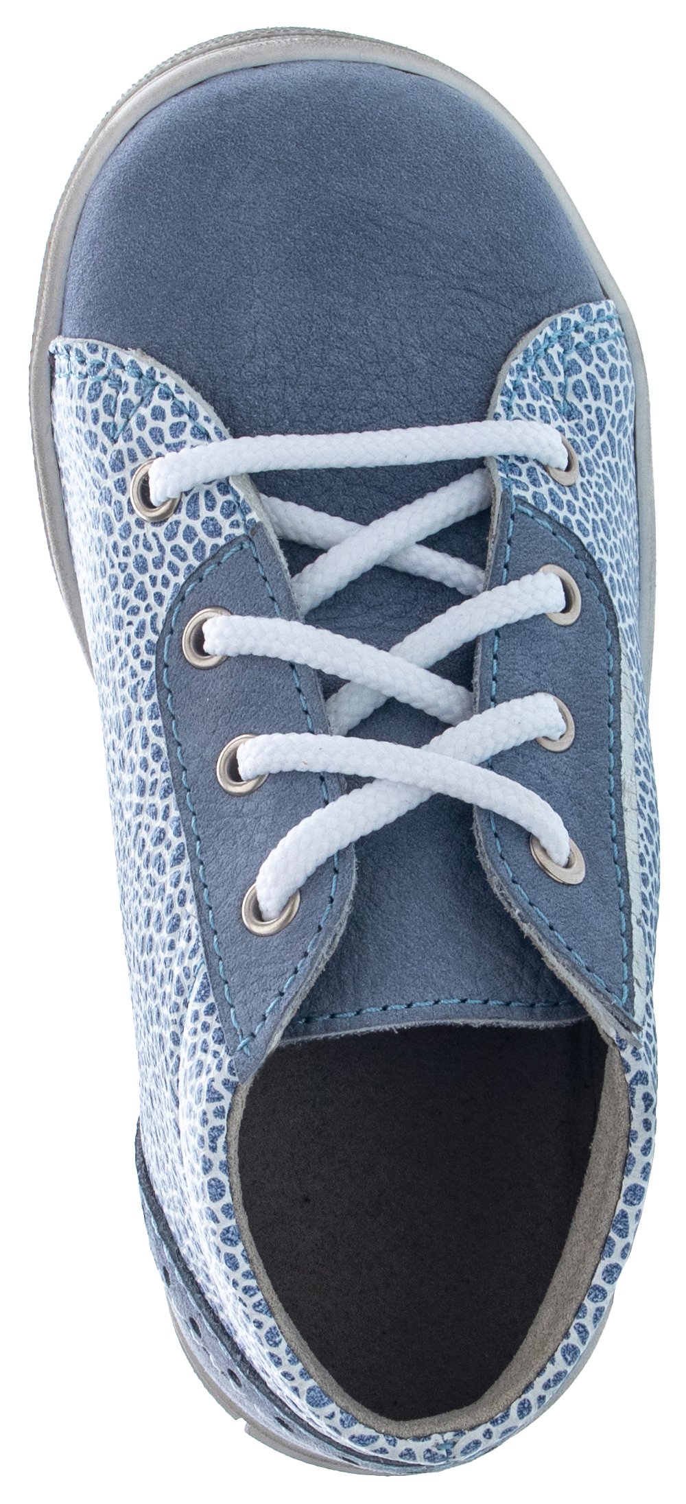 Střih je vhodný pro děti se středně vysokým i vyšším nártem. Zapínání na tkaničky umožňuje přesné dotažení obuvi, díky čemuž bota dobře sedí na noze a poskytuje potřebnou fixaci. Tento model je vhodnou volbou pro malé děti, které začínají objevovat svět po svých.