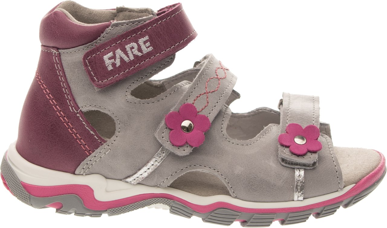 Sandálová obuv bez špice se zapínáním na velcro. Vrchový materiál - pravá kůže hladká. Podšívka -patní část a stélka je vyrobena z netkané textilie a přední boční díly z pravé kůže. Podešev je z termoplastického kaučuku. Předností je vypolstrovaná stélka, regulovatelnost obuvi přes nárt, pevný opatek a výška paty, která je v souladu s podmínkami zdravého obouvání.