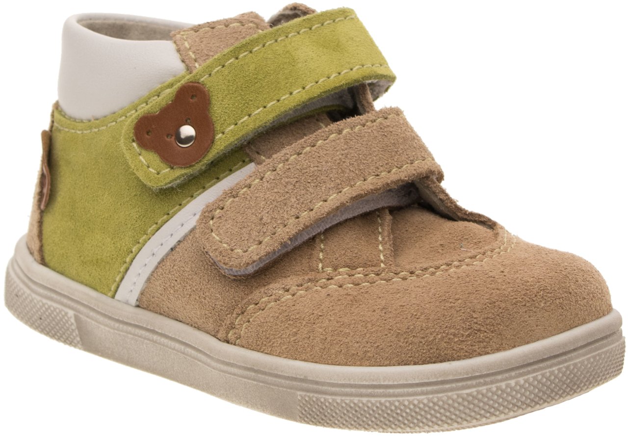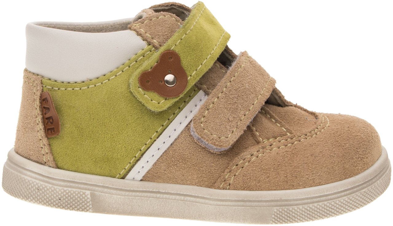 Střih je vhodný pro děti s nízkým a středně vysokým nártem. Zapínání na pásky se suchým zipem umožňuje rychlé obutí a snadné přizpůsobení obuvi dětské noze.
